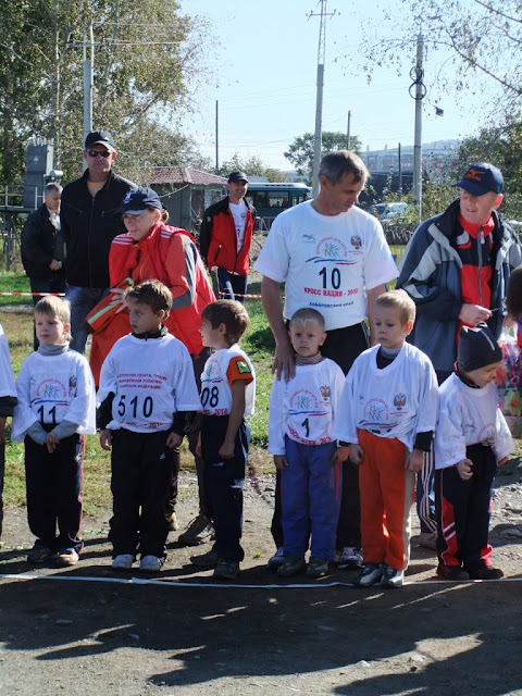 Жал, что эти ляльки будут только по фотографиям вспоминать, что с ними родители творили. Но бежать то они бежали честно, на финише уже метров 30 без папы и мамы, хорошо их приветствующая толпа не напугала, они после 1 км по пересеченной местности уже ничем не пугались.